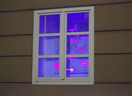 instalacja przygotowana do wystawy Milczenie śniegu, 2012. Prace w oknach