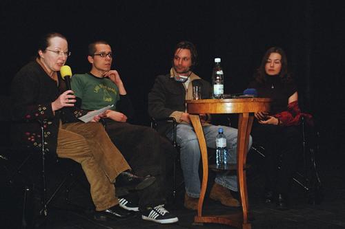 Spotkanie z Moritzem Rinke - Małgorzata Sugiera,teatrolog, Michał Zadara, reżyser, Moritz Rinke, Monika Muskała, tlumaczka
